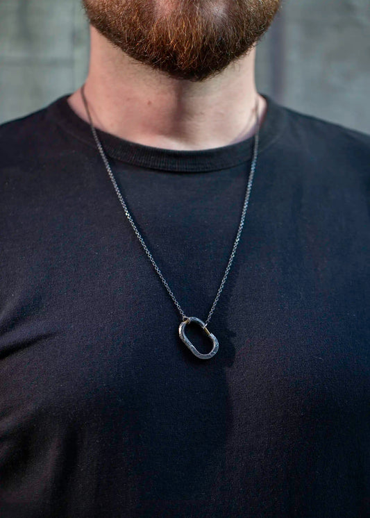 “Link” Pendant – Oxidized Silver & Gold Accents