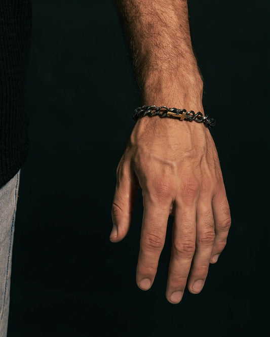 Cross Bracelet – Oxidized Silver Chain with 24k Gold Accent
