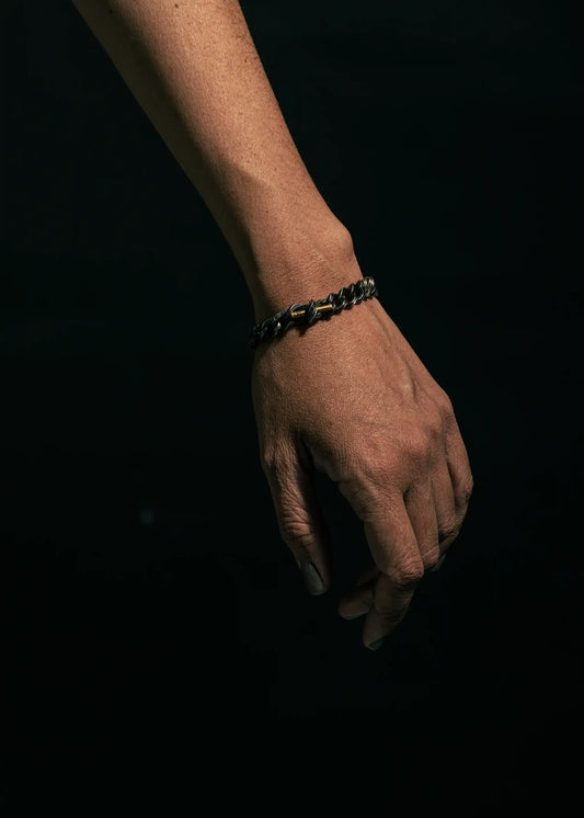 Staff and Chain Bracelet – Oxidized Silver with 24k Gold Accent