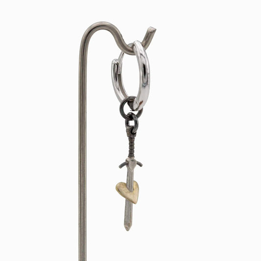 Gold Heart x Sword Charm – Sterling Silver with Gold‑Plated Heart