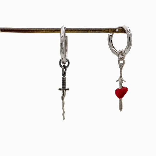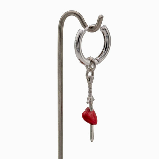 Red Heart x Sword Charm – Sterling Silver Earring with Enamel