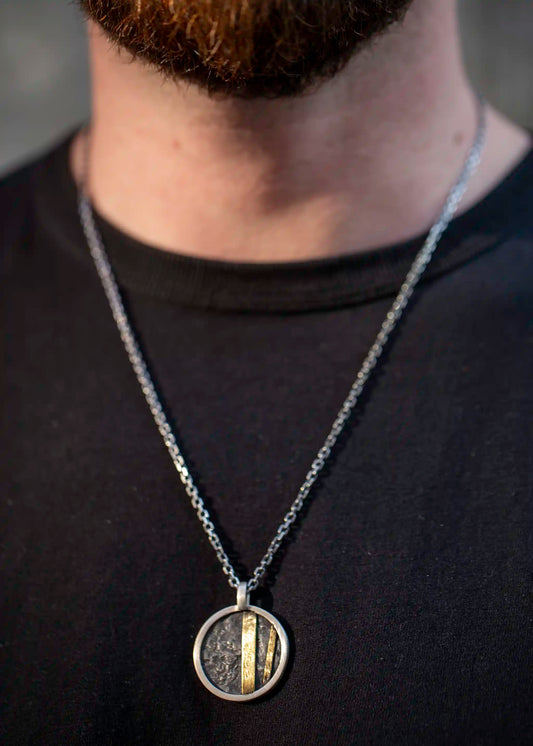 “Link” Pendant – Oxidized Silver & Gold Accents